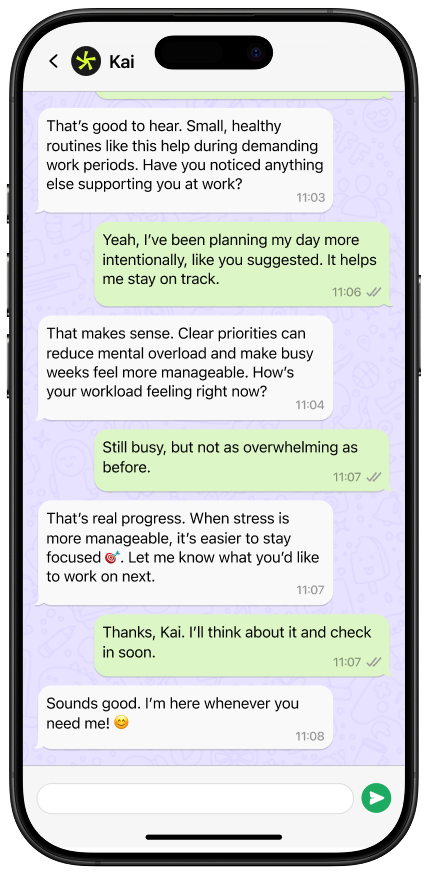 Professional support should be easy to access. Kai makes personal development simple, practical, and always within reach.